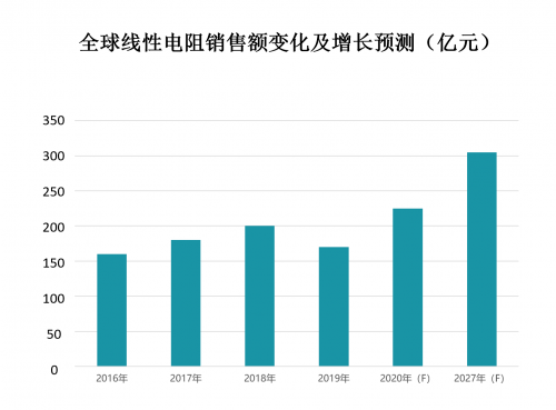 线性电阻方面,据CECA预计,2020年全球市场规模达230亿美元,其中车用市场(尤其是电动车市场),特别是中国市场是未来主要的增长来源之一。