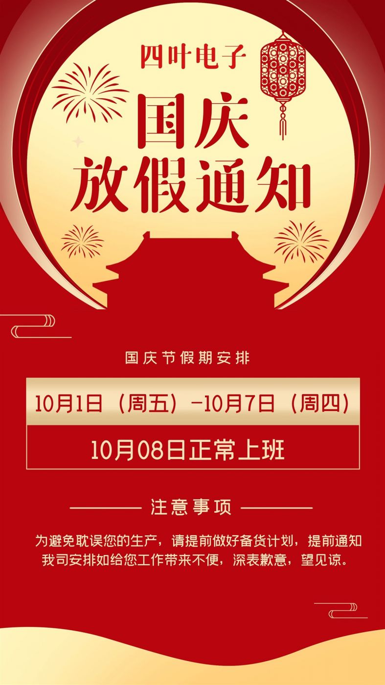 2021年国庆放假通知 - 四叶电子